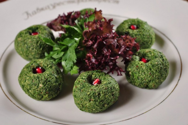 - Сформуйте кульки і прикрасьте кожен зернятком граната.