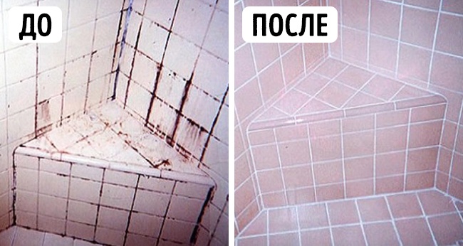 А щоб після збирання ванна довше залишалася чистою, використовуйте наступний метод: змішайте воду і оцет в пропорції 1/1 і распрыскивайте рідина на плитку і шви 2 рази в тиждень.