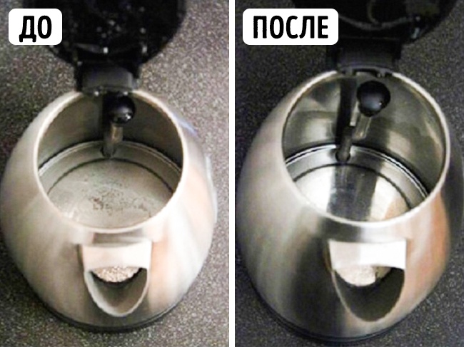 Щоб видалити накип у чайнику, залийте в чайник оцет з водою в співвідношенні приблизно 1/2, закрийте носик чайника (можна зробити «пробку» з паперу) і прокип'ятіть його стільки, скільки знадобиться, щоб накип зійшла. Потім ретельно вимийте.