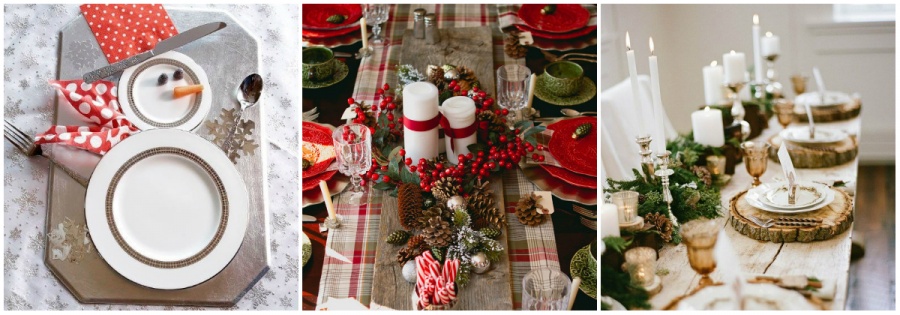 Не забудьте прикрасити обідній стіл: звичну скатертину доповніть настільної доріжкою з яскравим малюнком. А класичні лляні серветки можна прикрасити гілочкою ялинки або розмарину, скласти в фігурку сніговика чи ялинки. Картину доповнять ароматні свічки і новорічні вінки.