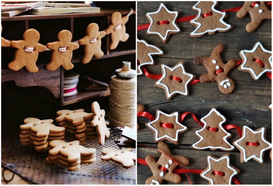 Якщо ви шукаєте оригінальний спосіб прикрасити будинок до наступаючого свята, спечіть ароматне імбирне печиво і зробіть у ньому невеликі отвори. Протягніть крізь дірочки стрічку і порадуйте близьких оригінальної їстівної гірляндою.