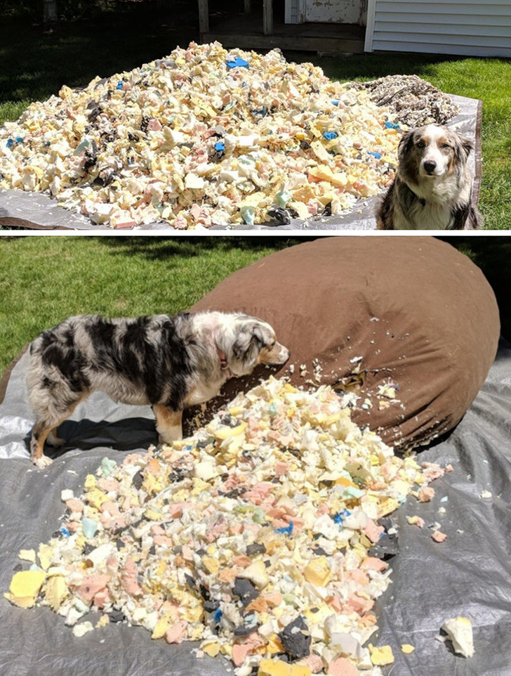 4. Ця собака обожнює розривати плюшеві іграшки і витягувати з них набивку. На день народження пса люблячий господар подарував йому величезне крісло-мішок