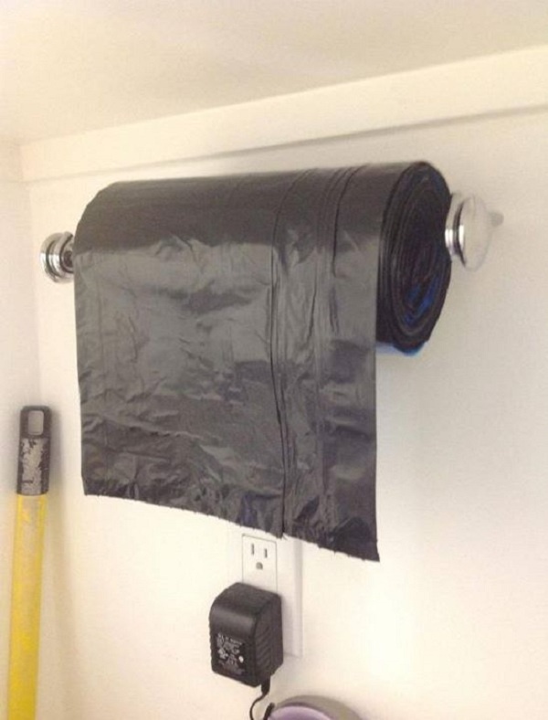 Тримач для паперових рушників можна використовувати для сміттєвих мішків.