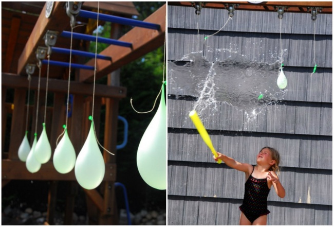 Підвісьте водяні бомби, приміром, до дерева і дайте дитині пластикову біту. Нехай веселиться!