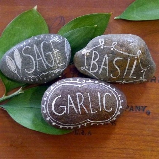 Красиво визначити, що і де посаджено, допоможуть прості камінчики з написами.
