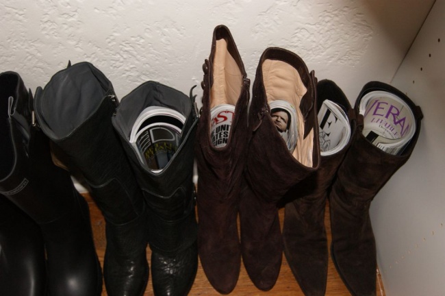 - Щоб зберегти форму чобіт, покладіть в них згорнуті журнали.