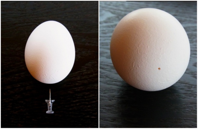 Перед варінням проткніть шкаралупу яйця канцелярською кнопкою, щоб потім можна було легко його очистити.