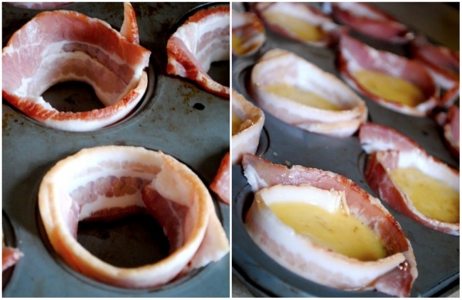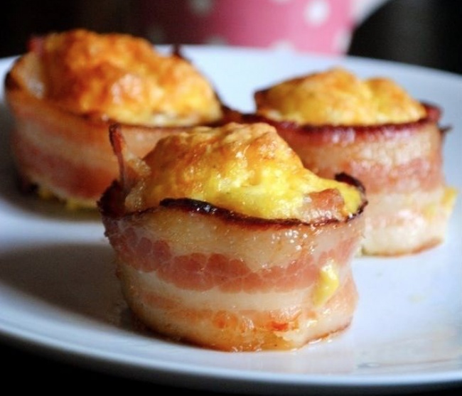 Щільний чоловічий сніданок: додайте у формочки для запікання шматочки бекону і яйця, а потім смажте.