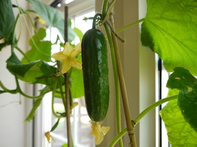 Щоб вирощувати на підвіконні або на балконі огірки, варто придивитися до гібридних сортів, які позначаються значком F1. Якщо для рослини створені всі умови, що воно може дати 3-4 десятка плодів. Тут доведеться трохи повозитися з розсадою, зате після пересадки в ящики треба буде тільки поливати і підрізати вусики.