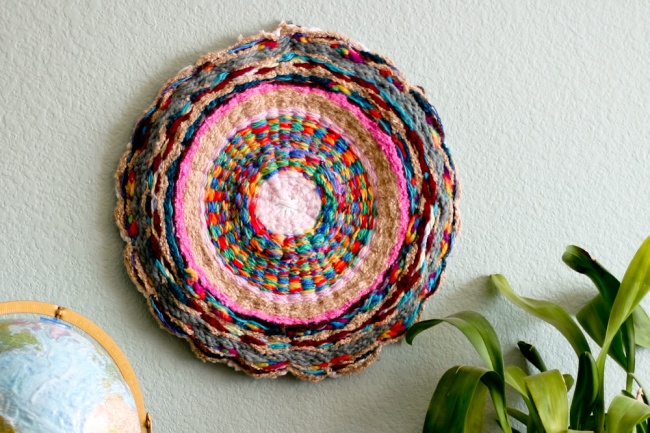 З допомогою обруча і товстих яскравих ниток ваша дитина зможе зробити такий килимок. Більш детальна і наочна інструкція по ссылке.