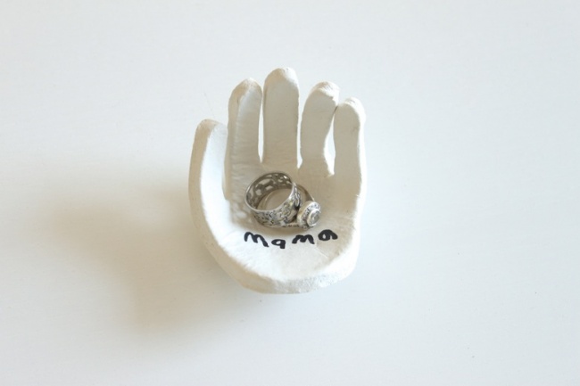 З допомогою полімерної глини та тенісного м'ячика дитина зможе зробити таку підставку для кілець, яка буде тільки у вас. Наочно по посиланню.