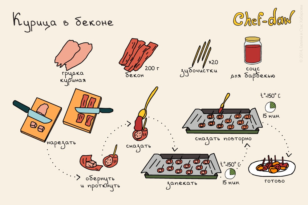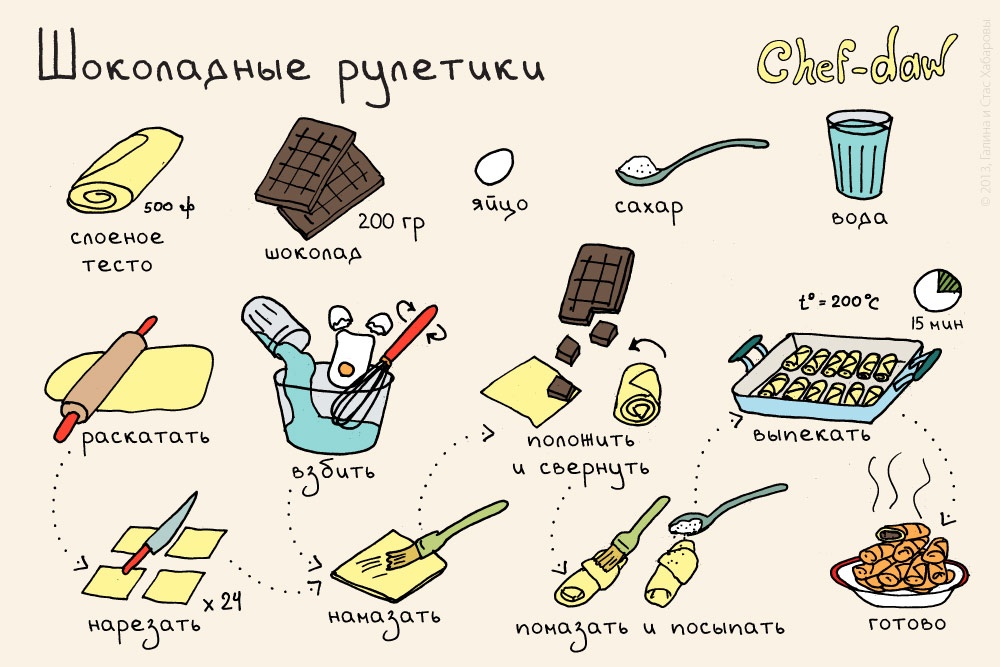 Ілюстратори та просто хороші люди Галина і Станіслав Хабаровы придумали крутий проект мальованих кулінарних рецептів на листівках Chef-daw.