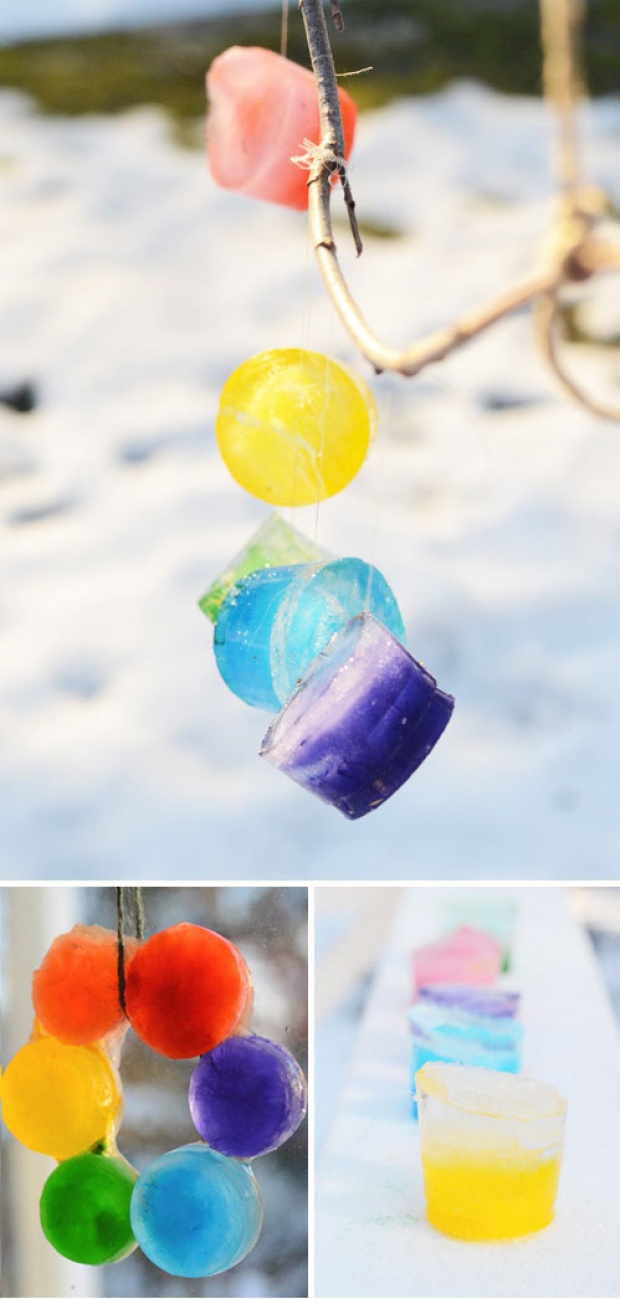 - Створіть ось такі яскраві і чарівні прикраси з льоду і фарб.