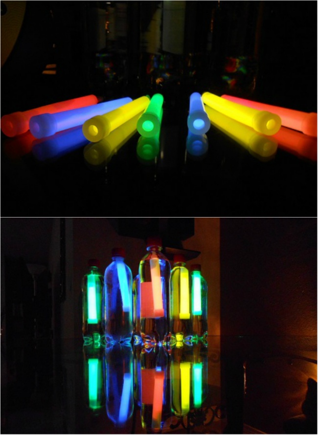 - Висадіть ніч яскравими світильниками, які можна зробити з простих пляшок з водою і світяться стрижнів.
