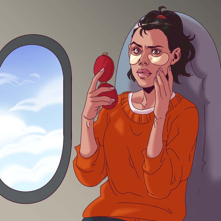 - Накладати латки для очей під час польоту в літаку. Повітря в салоні настільки сухий, що замість того, щоб наситити шкіру, патчі, навпаки, будуть витягати з неї вологу.