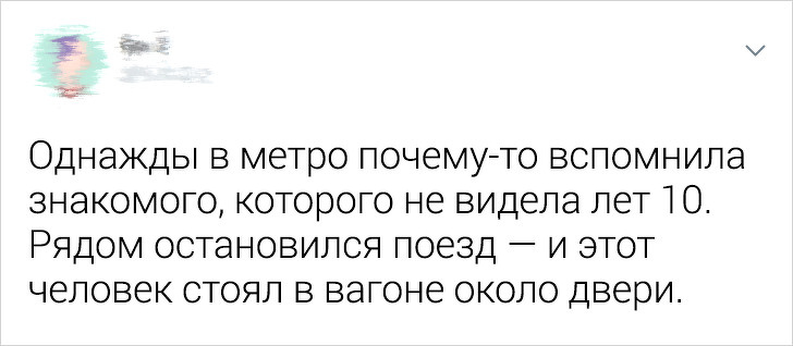 Я випадково зустрів свою дружину в китайському ресторані. Ми тоді жили окремо, так як збиралися розлучитися (вона вже подала документи на розлучення). У ресторані ми обидва відкрили наші печиво з передбаченнями. У мене було написано: «Тобі є що запропонувати правильній людині». У неї: «Дай йому ще один шанс». У підсумку все закінчилося тим, що ми вирішили не розлучатися. І після цього випадку ми щасливо живемо вже 12 років. © blscratch / reddit