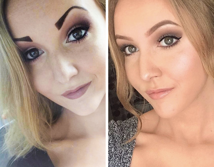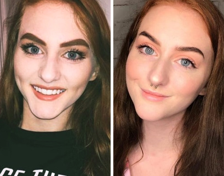 19. «На це боляче дивитися, але ось вам мої брови 4 роки тому і сьогодні. Слава богу, я поміняла свою техніку нанесення макіяжу»