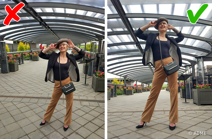 Шукати ідеальний ракурс зі знімками в повний зріст трішки складніше, ніж з селфи. Якщо ви хочете отримати знімок на весь зріст, краще попросити робити його трохи знизу: таким чином ви значно додасте собі зростання. Правда, цей фокус краще всього працює зі стрункими моделями.