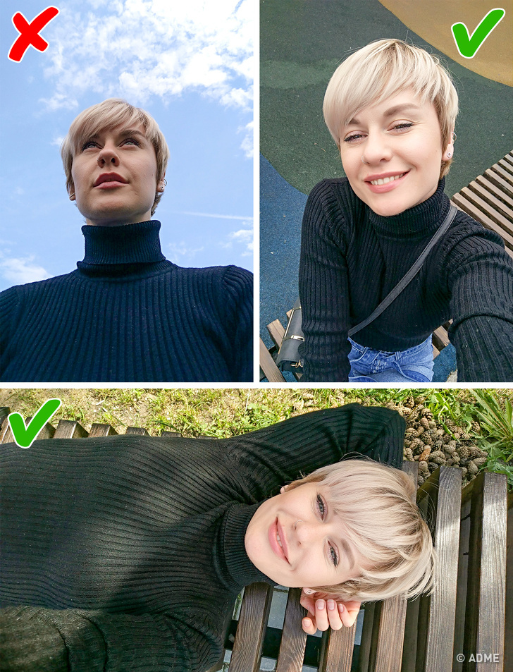 Наприклад, можна лягти на спину і зняти себе зверху. Чого варто остерігатися, оскільки це кадрів, зроблених знизу: вони мало кого фарбують.