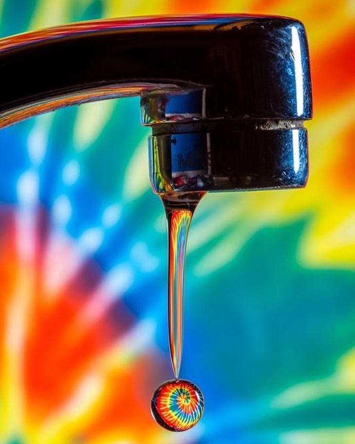 Схоже на спецефекти до фільму? Насправді у краплі води з крана відбилася різнобарвна футболка