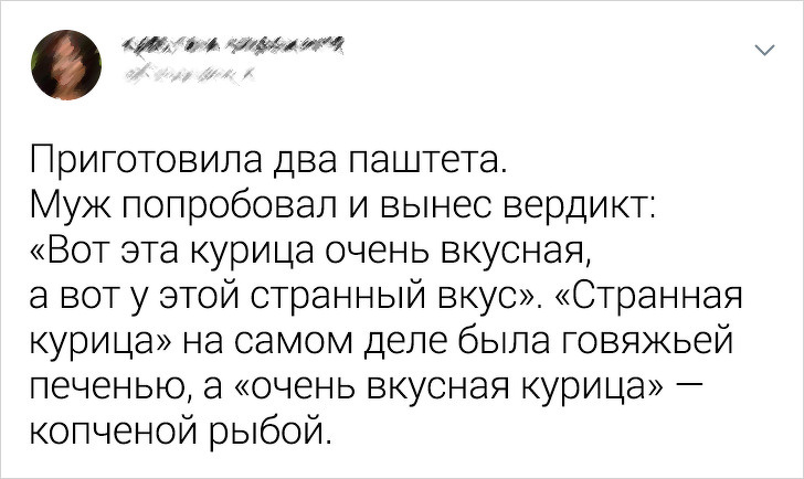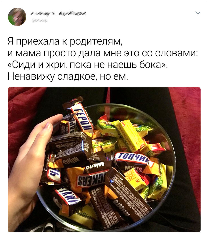 Приїхала до батьків. Мама весь вечір умовляла мене поїсти, заманюючи тим, що зробила мій улюблений салат. Після 15 спроб посадити мене за стіл я все ж здалася і сказала «так». Тоді тато, лежачи на дивані, обережно спитав: «Той, який я з'їв?» Сварка почалася. © KEK_Enot / twitter