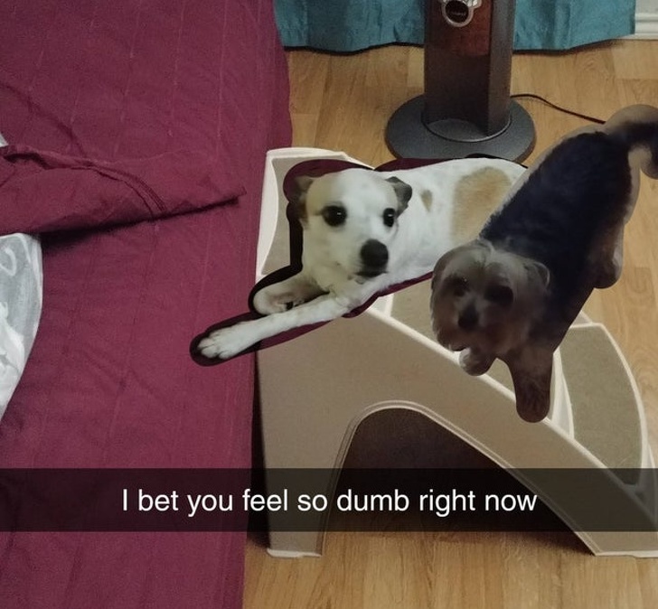 2. «Моя майбутня дружина ненавидить драбинку, яку я купив для собак. Каже, вони навіть не користуються нею. Після тижнів дресирування я вислав їй фото»
