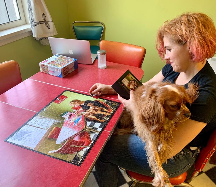 «Діти подарували мені пазл, на якому зображено, як я збираю пазл разом з моєю собакою. Що ми з собакою і зробили»
