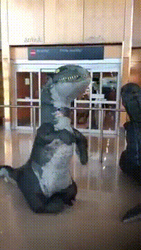 Онуки хотіли здивувати бабусю в аеропорту, одягнувшись як ти-рекси, але вона дізналася про це і спланувала власний сюрприз