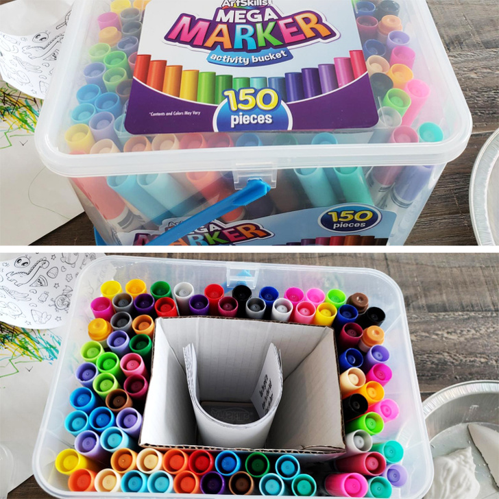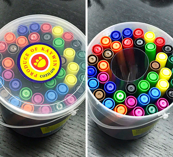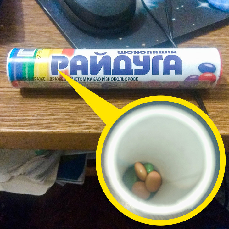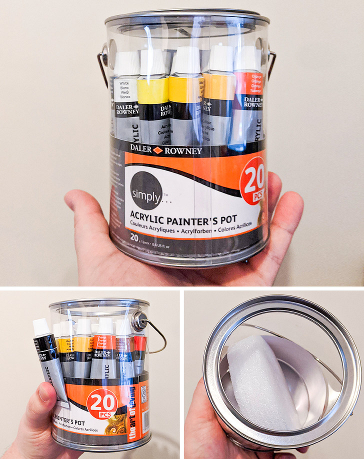 На дні цієї банки з акриловими фарбами лежить поролон, щоб тюбики здавалися більше