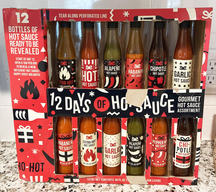 Виробник обіцяє 12 різних видів гострих соусів. Але насправді смаків всього 6. Придивіться до етикеток