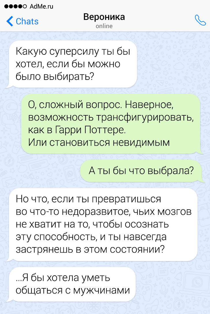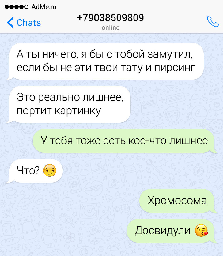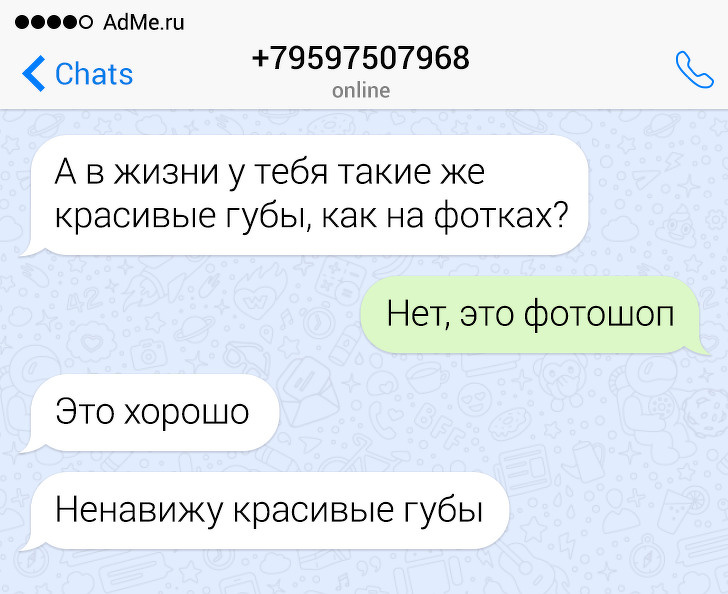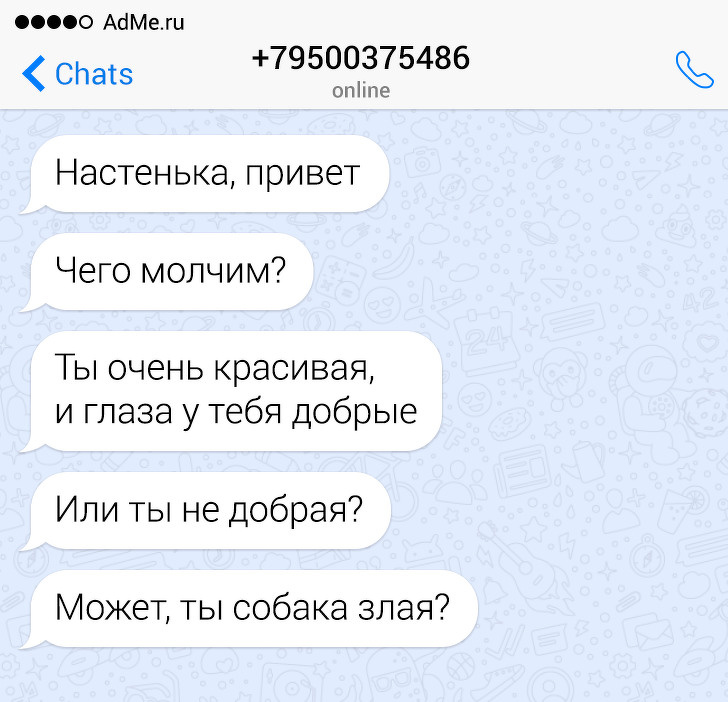 У вас траплялися подібні листування з горе-ловеласами? Можете переказати пару таких діалогів?