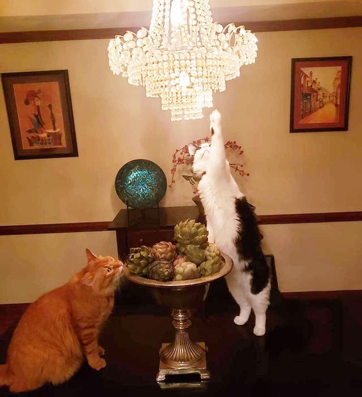 Ці кішки настільки величезні, що можуть легко дотягнутися до люстри