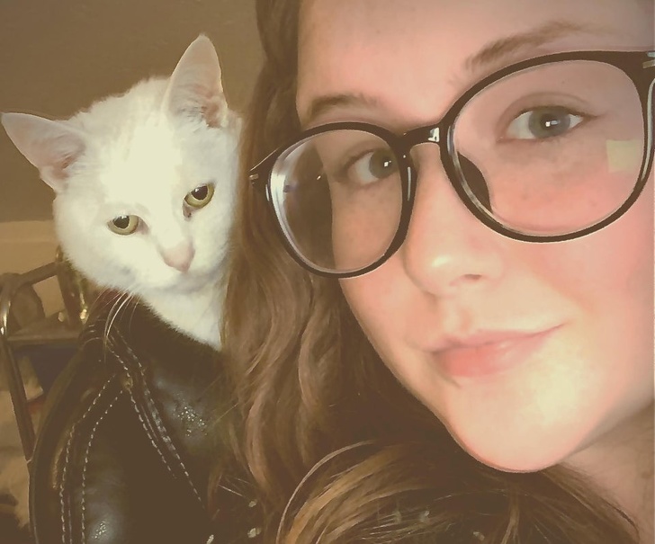 «Моя кішка, що сидить на спинці стільця, робить вигляд, ніби на ній шкіряна куртка»