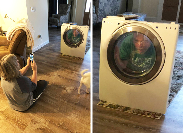«Ось як виглядає справжня любов. Моя мама фотографує мого батька, який робить вигляд, ніби застряг в сушарці»