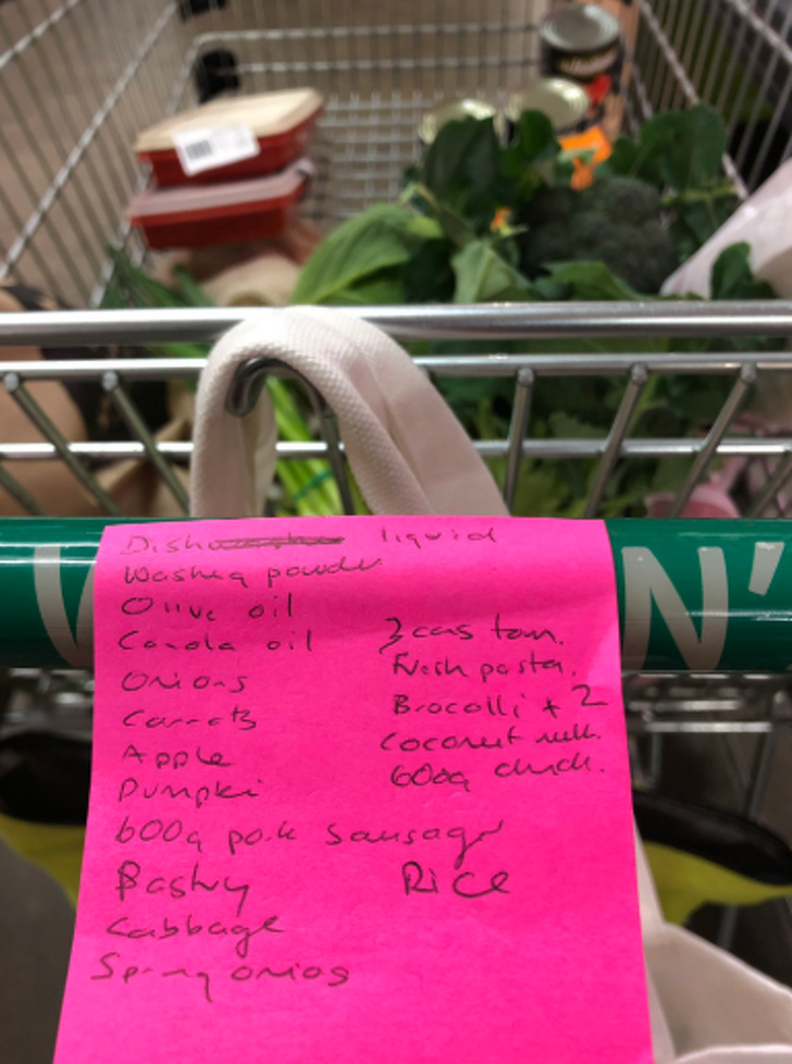 Щоб нічого не забути купити, просто наклейте список покупок на ручку візка
