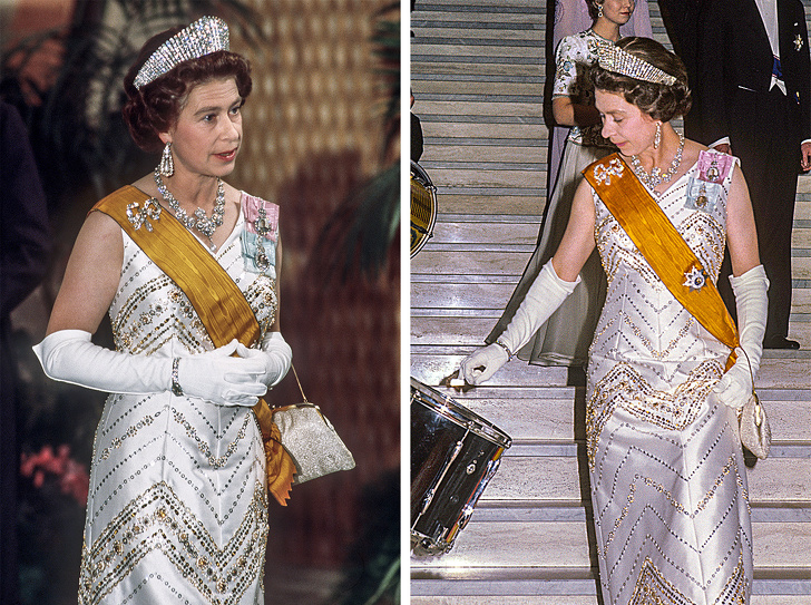 Єлизавета Олександра Марія зійшла на престол у 1952 році, у віці 25 років. Звичайно ж, за 7 десятиліть гардероб Її Величності зазнав безліч змін, підлаштовуючись під закони моди і етикету, адже за кожним кроком королеви стежать мільйони людей по всьому світу. Її іміджем займаються десятки людей, а правила стилю строго регламентовані. Наприклад, ви знали, що вечірній дрес-код для королеви важливих заходів і походів в театр не обходиться без високих атласних рукавичок, діадеми або корони, а також хутряної накидки для холодної погоди? А сама Єлизавета II ніколи не була в кімнаті, де розміщена її одяг. Щоранку помічник з ескізами приходить до монаршої персони, і вона вибирає потрібний їй образ за настроєм.
