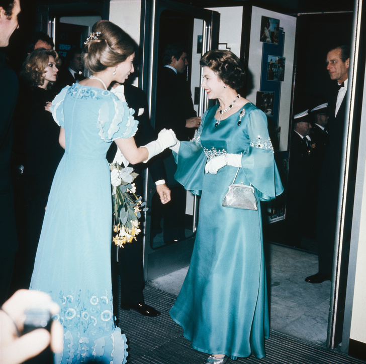 Королева Єлизавета II, принц Філіп і принцеса Анна на прем'єрі фільму «Вбивство в „Східному експресі“» в кінотеатрі ABC Cinema, Лондон, 1974 рік