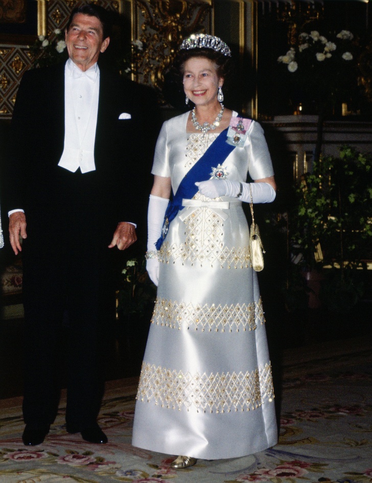 З президентом Рональдом Рейганом на бенкеті під час офіційного візиту королеви в США, 1983 рік