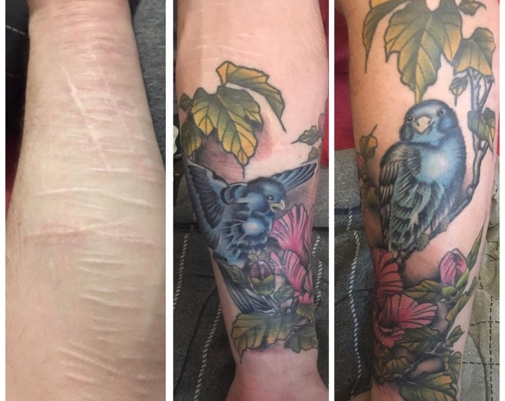 У дівчини було велике родима пляма на лівій руці. Але тату-майстер постарався, щоб вона могла не переживати за свого вади