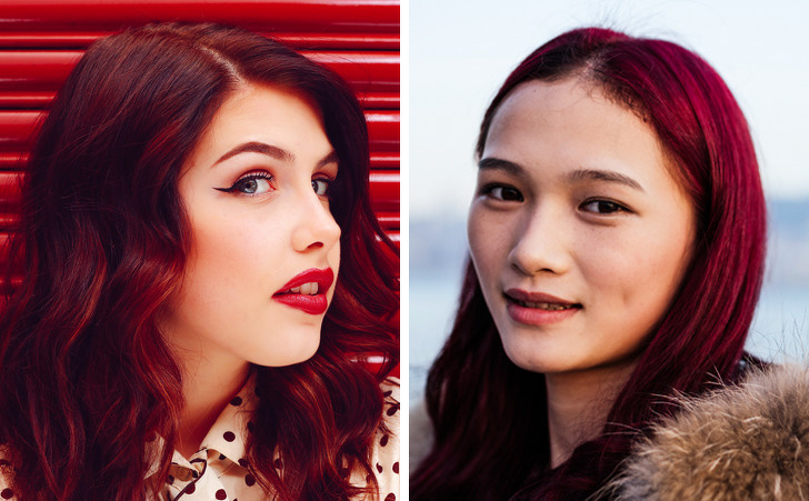 Таке фарбування зараз на піку популярності. Це відмінна ідея для тих, хто хоче незвичайний колір волосся, але не готовий виглядати занадто помітно. Багатогранний вишнево-винний колір найповніше розкривається на довгому волоссі, але і на коротких стрижках він виглядає відмінно.