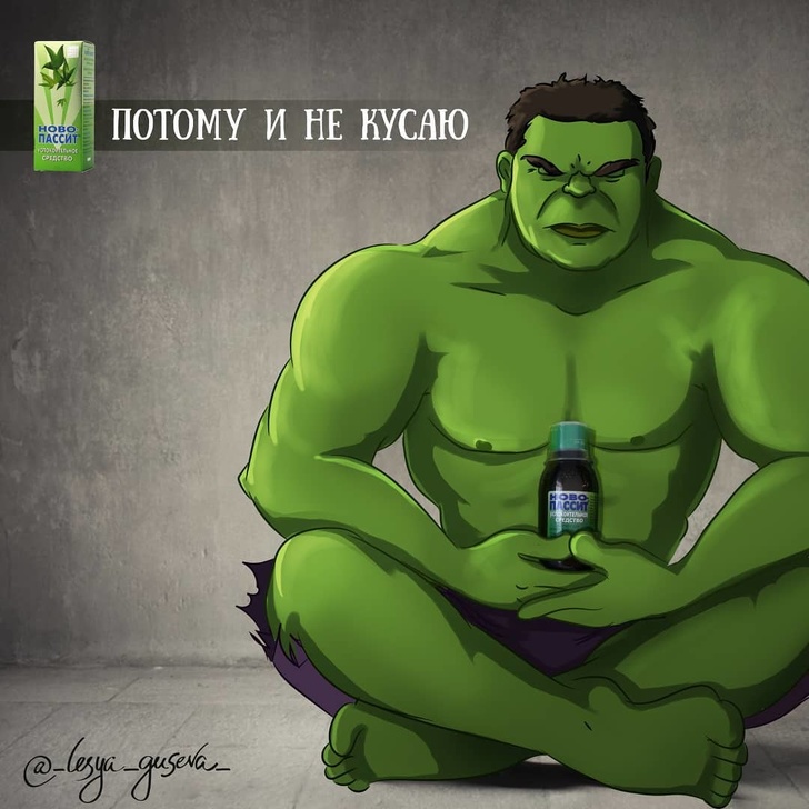 Супергерої можуть не тільки рятувати світ, але і виступати особами іменитих брендів. Художниця з Пермі Леся Гусєва показала, що могли б рекламувати відомі персонажі, якби їм дали таку можливість.