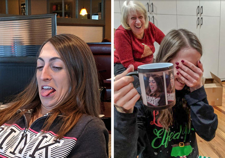 «У це Різдво моя сестра засвоїла цінний урок: якщо ви дозволите старшому братові сфотографувати вас, коли корчите пики, то обов'язково отримаєте в подарунок кухоль саме з таким знімком»