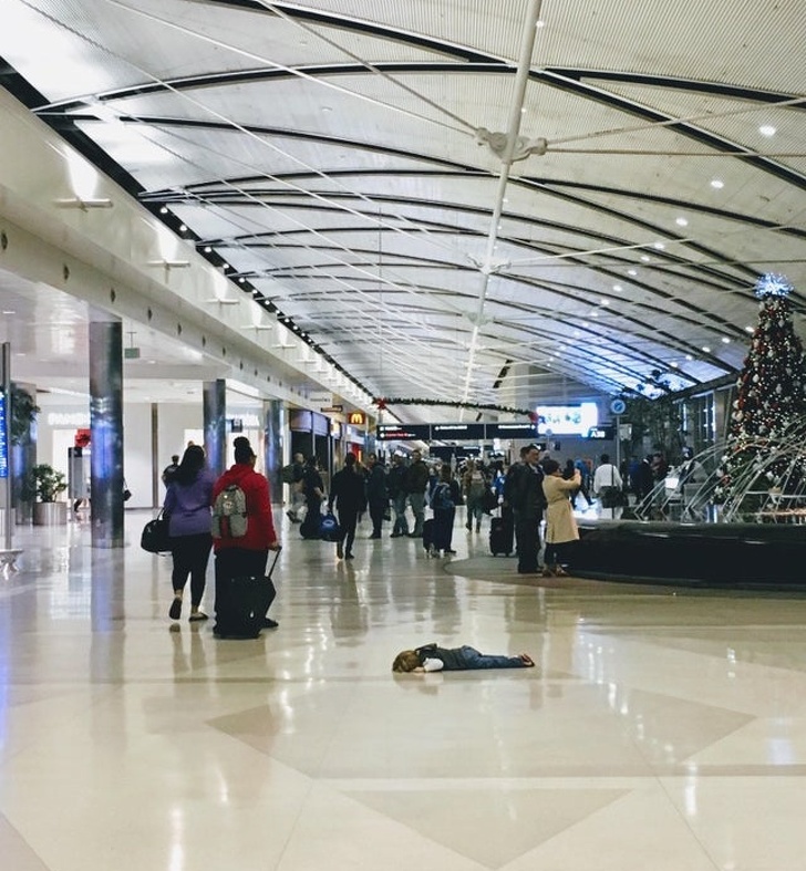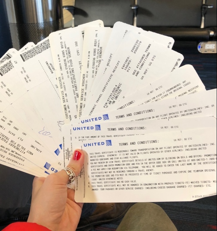 «Моя сестра застрягла в аеропорту Піттсбурга з-за туману, і нам довелося відкласти святкування Різдва. Вона намагалася вилетіти будь-яким рейсом, але все в підсумку скасували: подивіться, скільки у неї посадкових. До речі, ще і її багаж загубився, хоча літак так і не злетів»