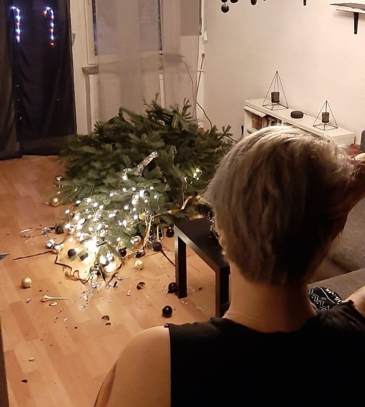 «Я програв парі сьогодні ввечері. Посперечалися з дружиною, скільки протримається ялинка. Я думав, що вона не простоїть і 6 годин. Коти чекали аж 7»