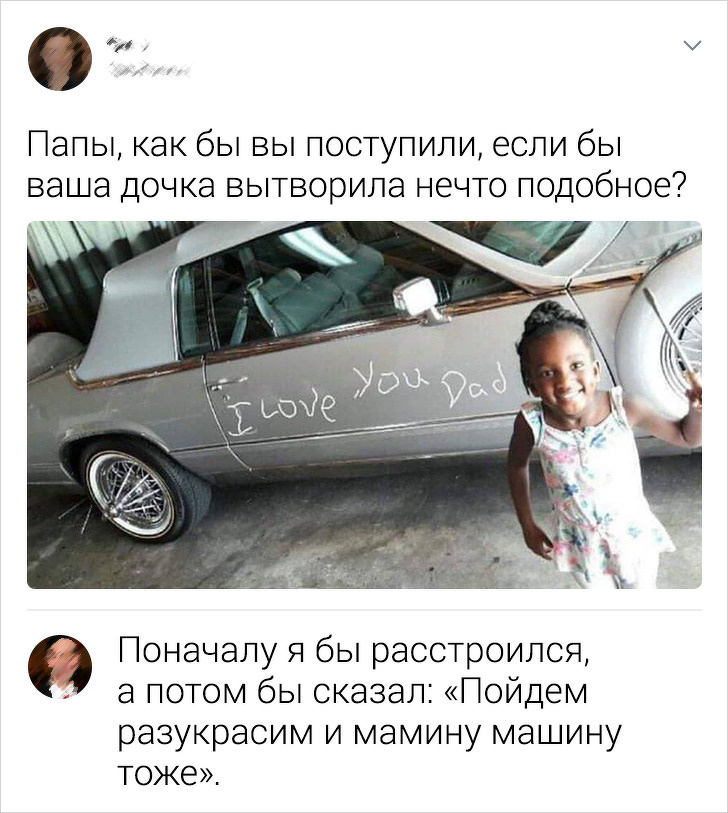 1. «Останні пару років раз на місяць мій чоловік веде 6-річну дочку на побачення. Спочатку він дарує їй квіти, потім вона вбирається, а після вони йдуть лопати солодке»
