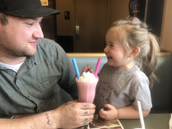 16. «Мій тато часто водив мене випити мілкшейк удвох. А це ми з моєю дочкою ділимо наш перший мілкшейк»