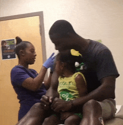 5. Батько вдає, ніби йому теж роблять щеплення, щоб його дочка не боялася