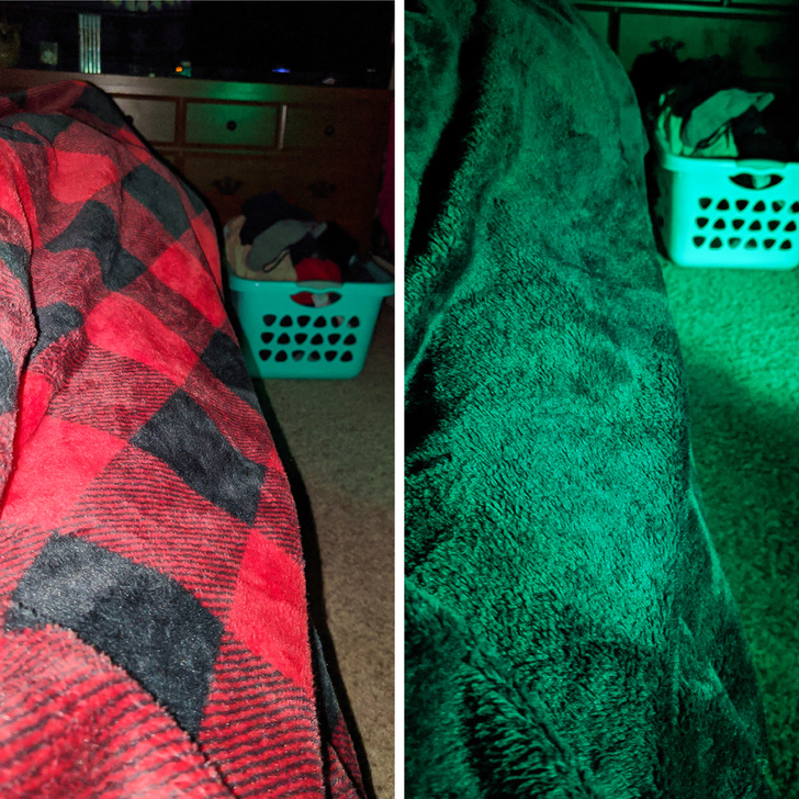 «Моє фланелевою ковдру під зеленим світлом змінює колір»