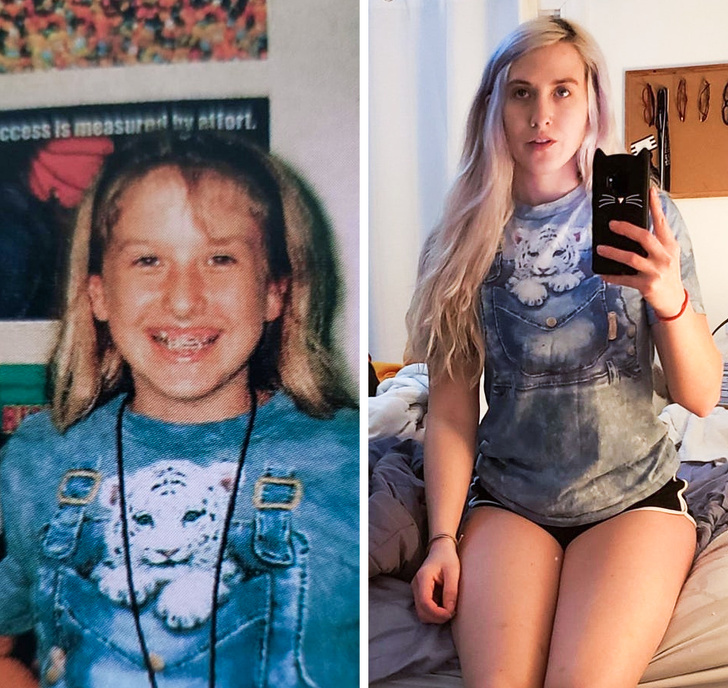 «12 років і 19. На мені така ж футболка того ж розміру, але я виразно стала ще більш дивною, ніж була»