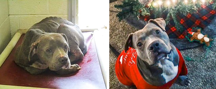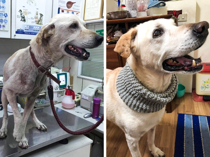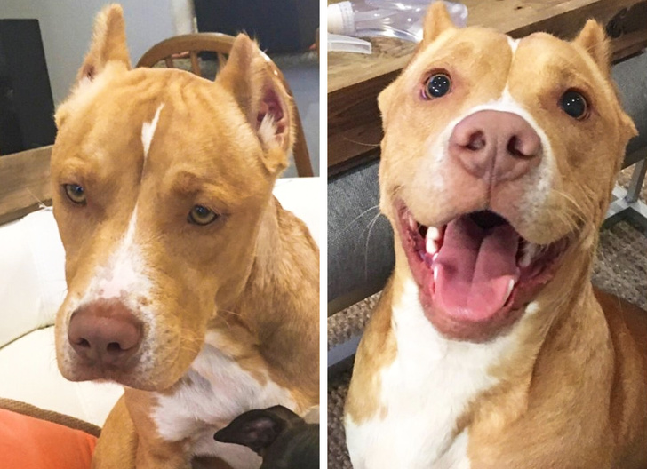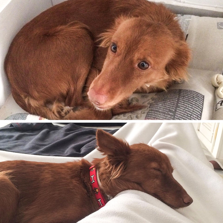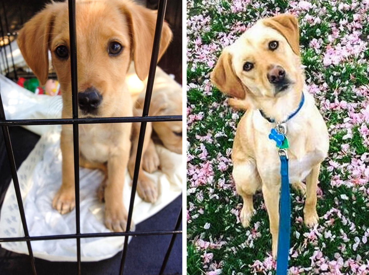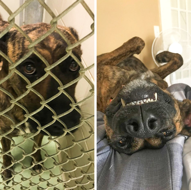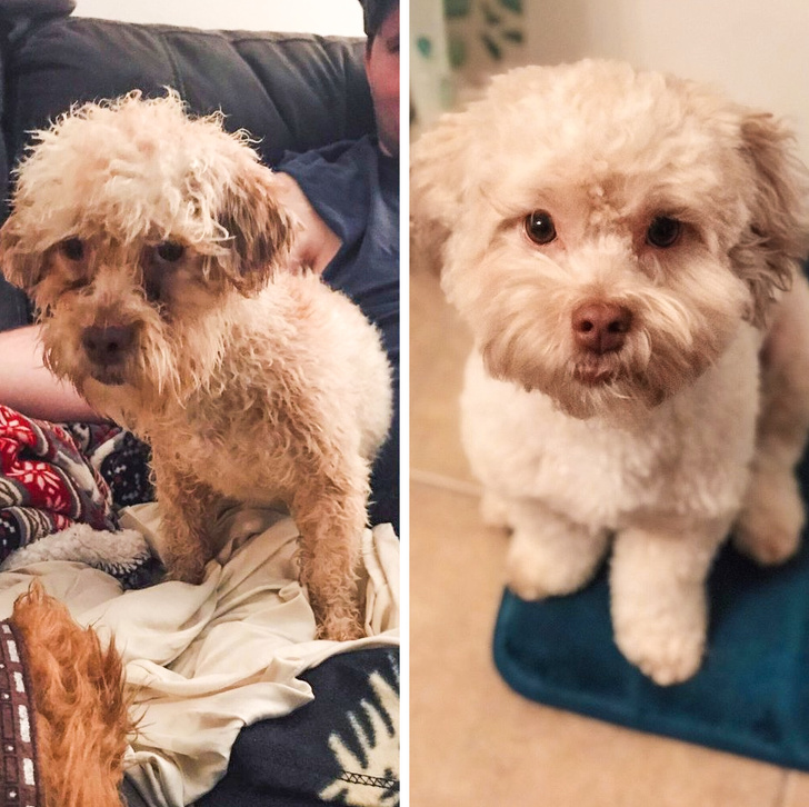 "Це мій пес за день до того, як ми його "усиновили", і через кілька місяців після цього".